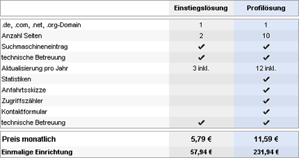 Der Webservice ist eine speziell für Freiberufler und Kleinunternehmen konzipierte Lösung, die weder einen vierstelligen Betrag für einen Internet-Aufritt ausgeben können noch sich mit diesem Thema tagelang technisch auseinandersetzen wollen!